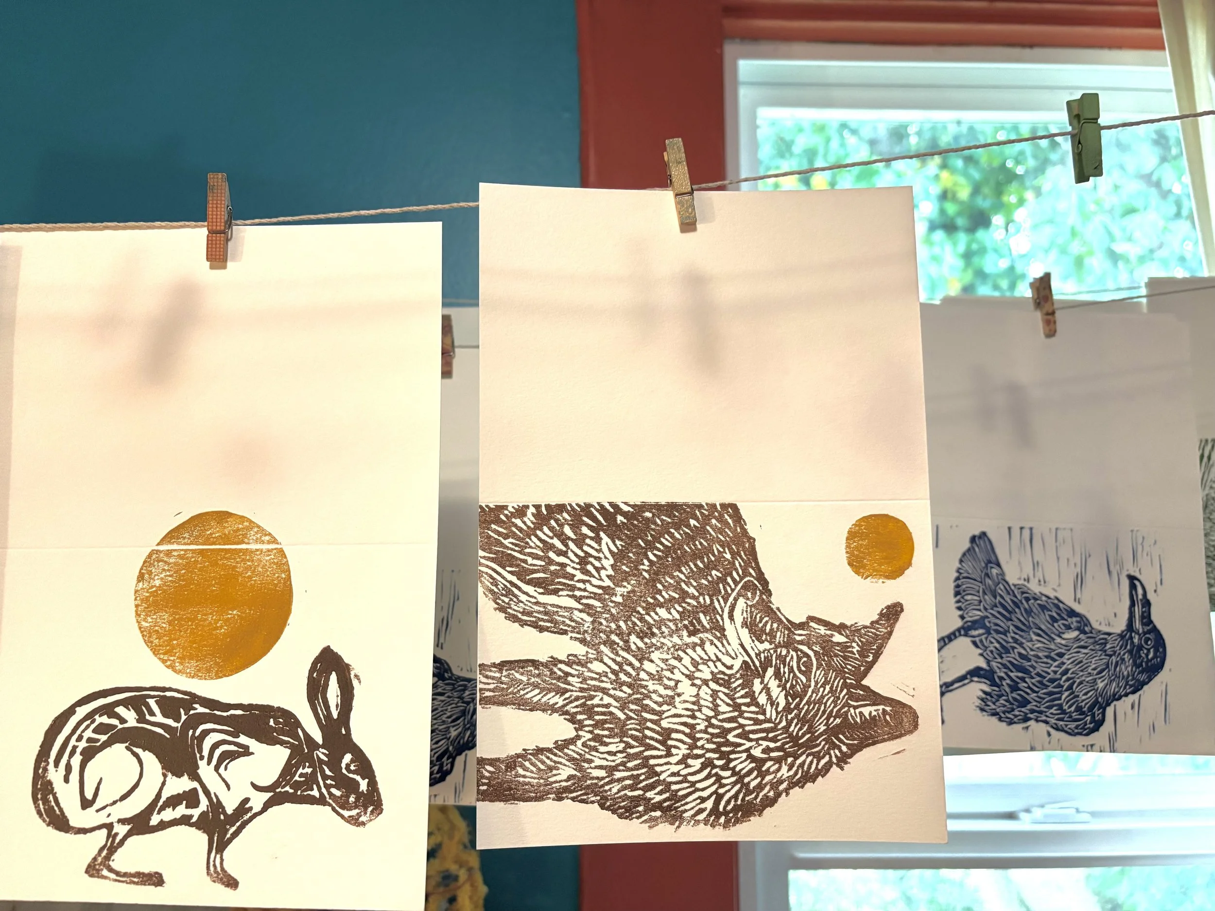 Each item is made with intention. Every block for every card or package of tea is carved, inked and printed by hand on my small press.